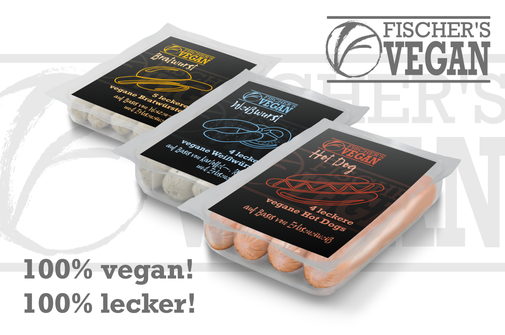 Und so präsentieren wir voller Stolz unsere erste Kollektion von "Fischer´s Vegan", bestehend aus Bratwürsten, Hot Dogs und Weißwürsten.
